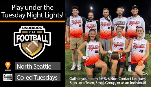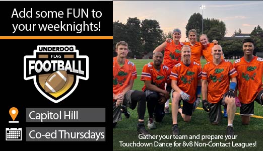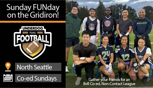 Play Underdog Flag Football in Seattle! Our largest league starts up again soon!